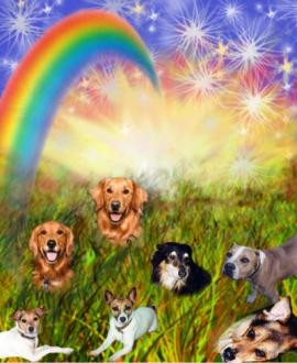 All the animals who had been ill and old are restored to health and vigor. Those who were hurt or maimed are made whole and strong again, just as we remember them in our dreams of days and times gone by. The animals are happy and content, except for one small thing; they each miss someone very special to them, who had to be left behind.